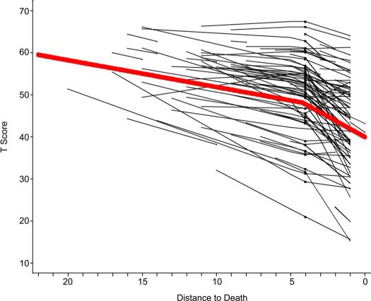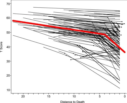 at death = 74 years; SD = 14; 48% women). Results revealed that