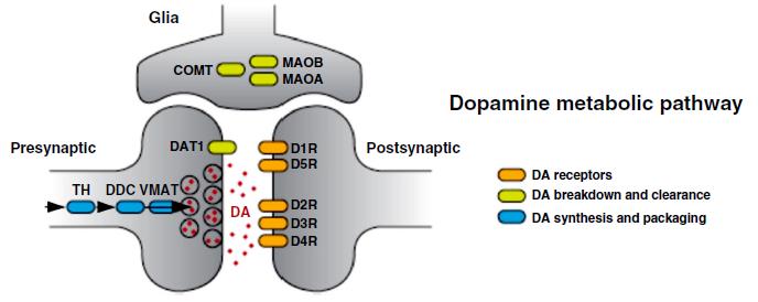 untrennbar eng miteinander verbunden. Die folgenden zwei Grafiken zeigen im Überblick neuro- und molekularbiologische Lebensprozesse im Dopaminsystem: