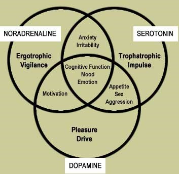 Dabei dämpft es eine ganze Reihe verschiedener Gemütszustände wie Aggressivität, Hunger, Angstgefühle, Kummer und Sorgen, Niedergeschlagenheit und Depressionen. Deshalb wurde Serotonin