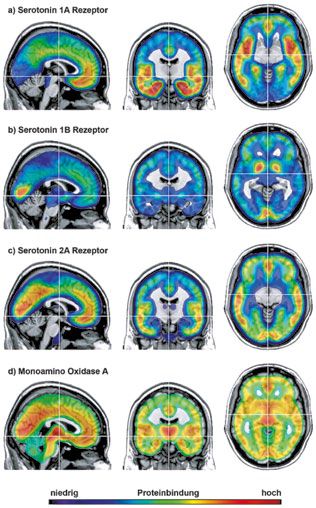 gut genug funktionierendes Serotoninsystem überträgt an seine Serotonin 1A-, 1B-, 2A-Rezeptoren und