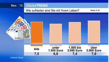 zufriedensten Personen waren diejenigen, die im Jahr ein Netto-Haushaltseinkommen von